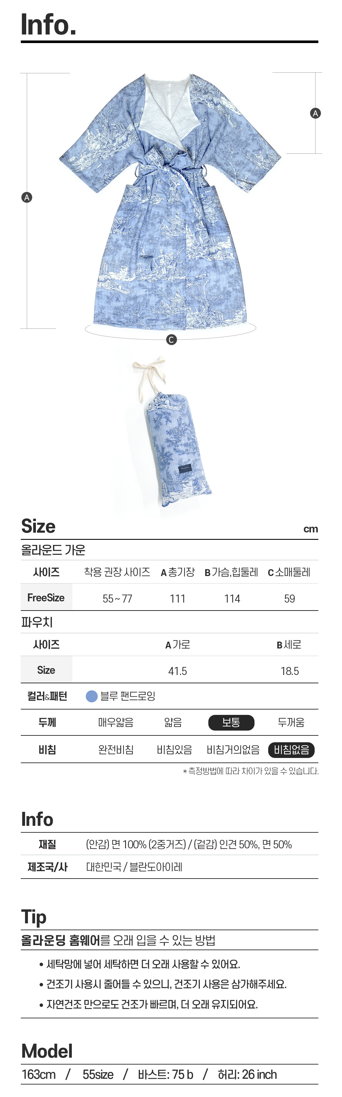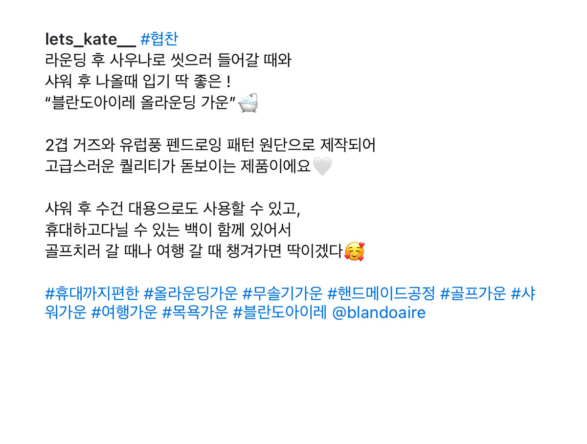 BLANDOAIRE 올라운딩샤워가운 (골프,샤워,비치,수면)